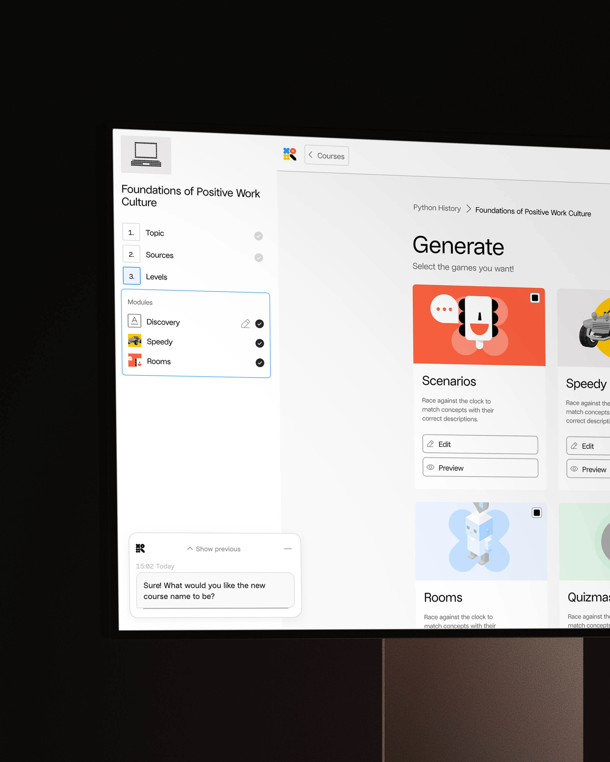 Turns existing learning material into playable games in seconds. No production, no redesign, no maintenance.